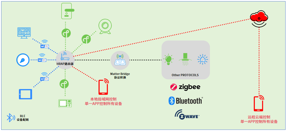 在智能家居行业中,Zigbee、Z-Wave、Bluetooth、Wi-Fi与Thread都是应用较为广泛的通信协议,但由于它们的协议栈架构设计存在差异,导致上层逻辑无法兼容,因此使用不同通信协议的设备之间难以进行直接的互联互通。